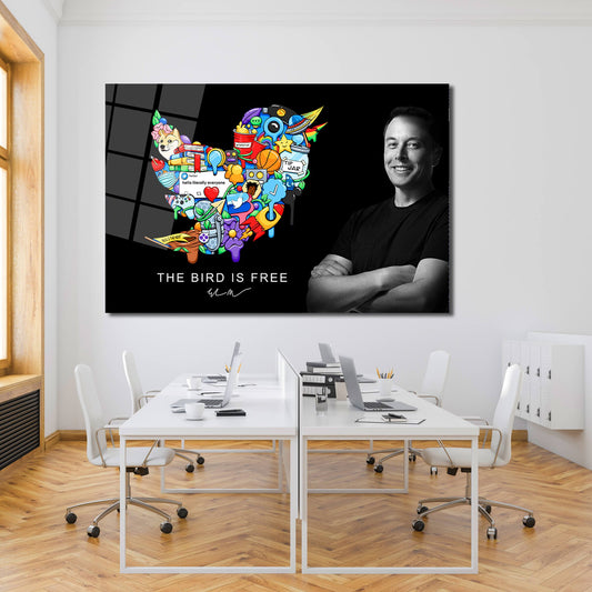 Elon Musk's Twitter Bird Free Speech Wall Art Twit-ter Wall Poster Blue Bird Art First Post Ever Canvas Social Media Logo Meme Office