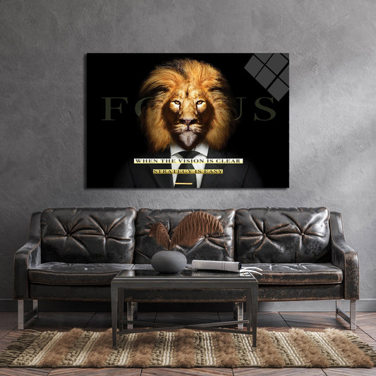 Motivational Wall Art Clear Vision Inspirational Quote Poster Lion Head Costume Print Strategy Canvas Focus Entrepreneur
