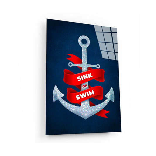 Sink or Swim Canvas Art High Quality Diamonds Motivational Entrepreneur Art for Home and Office Ocean Design Anchor Quote Poster Art
