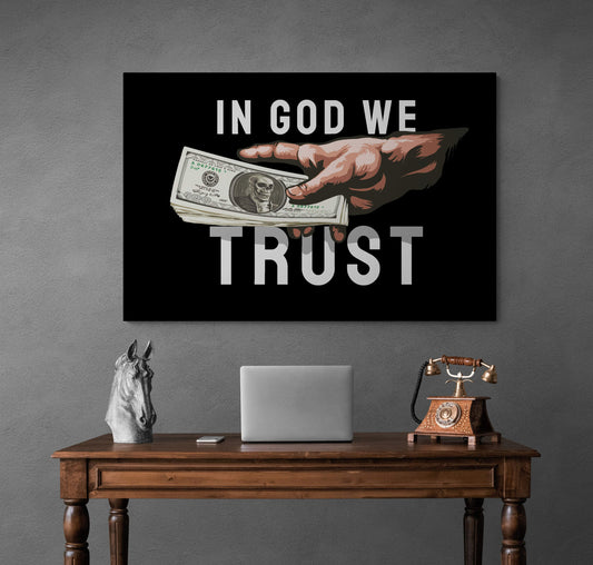 In God We Trust Money Canvas Motivational Office Metal Poster Print Hand with Dollars Wall Art Office Financial Freedom Poster Decor