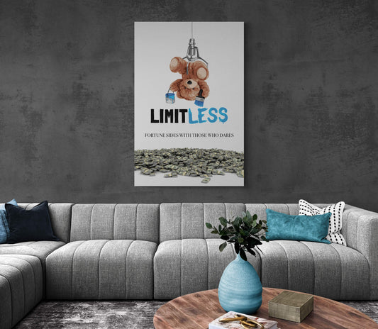Fortune Sides with Those Who Dares Canvas Motivational Poster Inspirational Money Art Bear Limit-less Funny Sign A Lot of Dollars Print