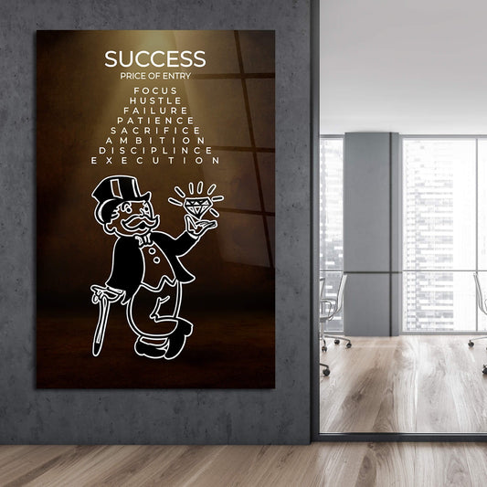 ALEC MONOPOLY Success Motivational Art Acrylic Canvas Poster for Office - Rich Uncle Inspiration with Focus Ambition Hustle Discipline