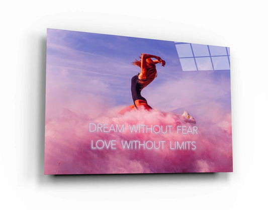 Dream Without Fear Love Without Limits Canvas Acrylic Metal Poster Print Dancing Woman in the Clouds Powerful Woman's Quote Wall Art