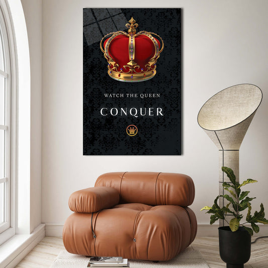 Watch the Queen Conquer Canvas - Crown Modern Acrylic or Metal Print Art - Her Room Wall Decor Canvas for Women Business Lady Entrepreneur
