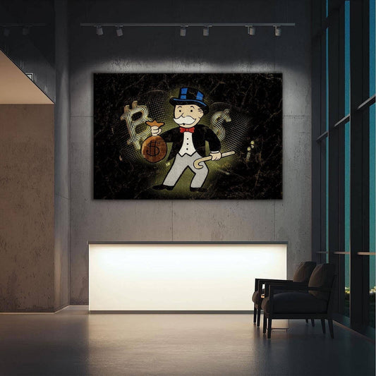 Bitcoin Gold Limited Edition Alec Monopoly Canvas - Motivational Office Art in Acrylic Metal and Canvas - USA Made - Various Sizes Available