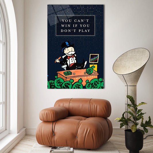 Motivational Wall Art Alec Monopoly Poster for Entrepreneurs - You Cant Win if You Dont Play Print for Success on Canvas