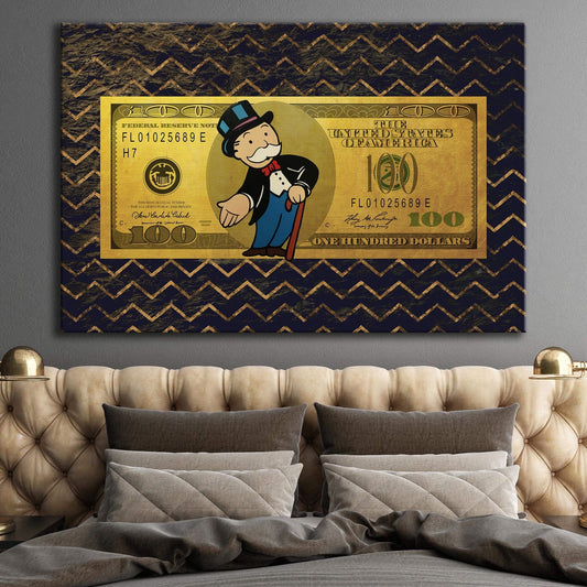 Alec Monopoly Canvas Dollar Bill Gold Office Wall Art Poster Limited EditionGold and Black Office Decor Dollar Bill - Limited Edition
