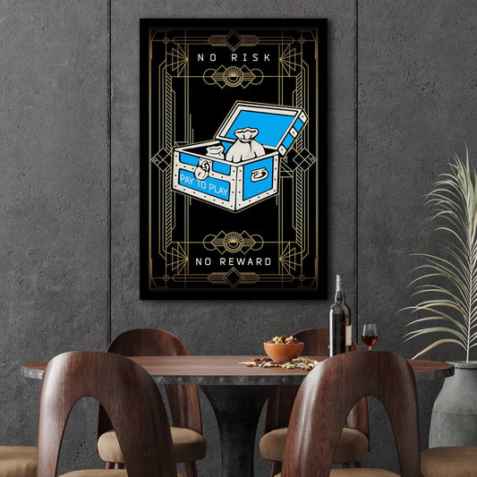 Motivational Monopoly Wall Art - Entrepreneur Office Print with Inspirational Quotes - No Risk No Reward Pay to Play Canvas