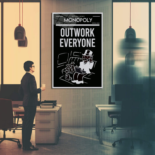 OUTWORK EVERYONE Alec Monopoly Wall Art - Motivational Inspirational Black and White Uncle Sam Office Canvas for Entrepreneur Print