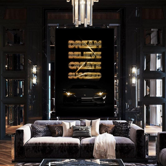Lamborghini Motivational Wall Art Canvas Print Office Decor Entrepreneur Inspirational Quote Dream Believe Create Succeed Sport Car Poster
