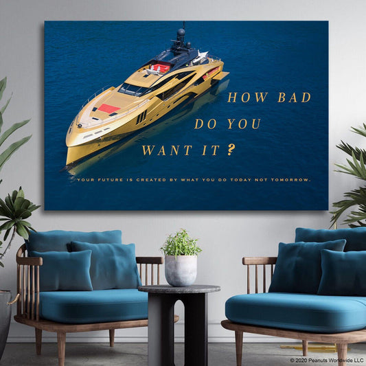 Luxury Yacht Motivational Wall Art Canvas Print Office Decor Entrepreneur Inspirational Quote Success Business Poster Gold Yacht Ocean