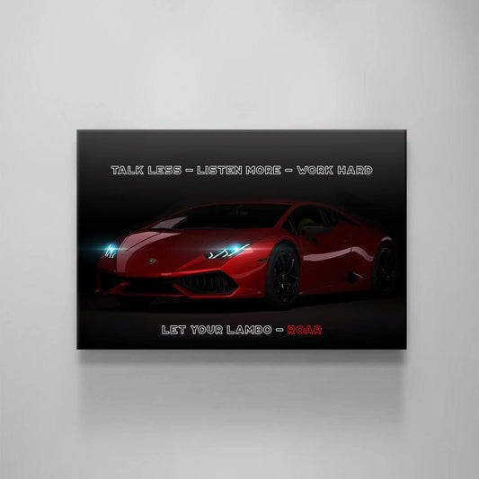 Motivational Acrylic or Canvas Poster Print Red Lambo Car Let Your Lambo Roar Art Inspirational Entrepreneur Home Office Decor