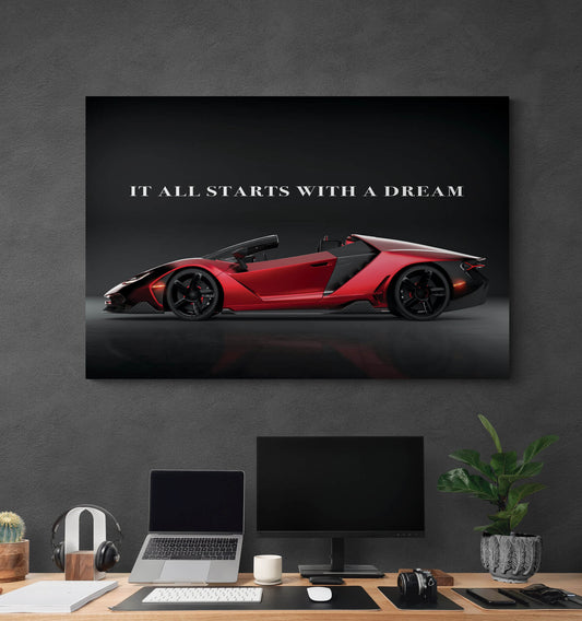 It All Starts with a Dream Acrylic Metal or Canvas Poster Print Red Lamborghini Motivational Quote Living Room Office Car Quote Decor