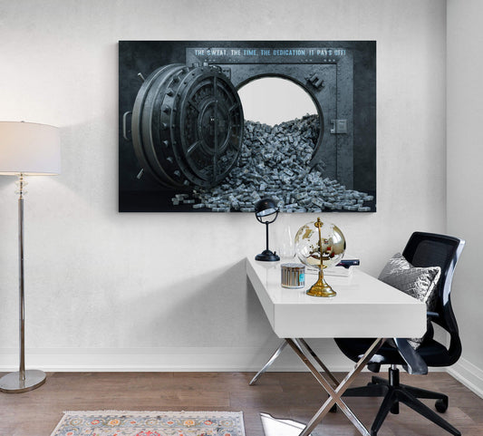 It Pays Off Canvas Motivational Financial Freedom Metal Poster Print Money Inspirational Acrylic Wall Art American Dollars Office Art