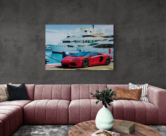 Millionaire Lifestyle Canvas Rich Wealthy Businessman Red Lambo Poster Miami Lifestyle Acrylic Ocean Canvas Art Luxury Background Print