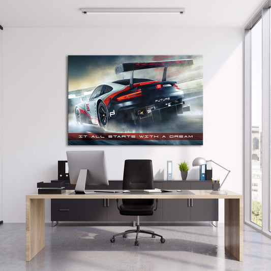 It All Starts with a Dream Acrylic Metal or Canvas Poster Print Sport Car Motivational Quote Living Room Office Car Quote Poster Decor