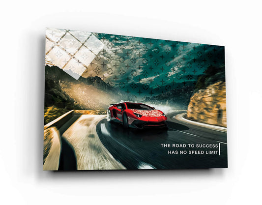 The Road to Success Has No Speed Limit - Motivational Wall Art - Red Lambo Inspirational Quote Poster - Dollars Way to Success Print