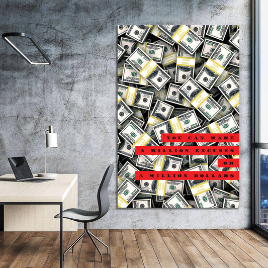 Motivational Wall Art Inspirational Office Poster Money Quote Canvas Million Dollars Art No Excuses Poster Entrepreneur Motivate Print