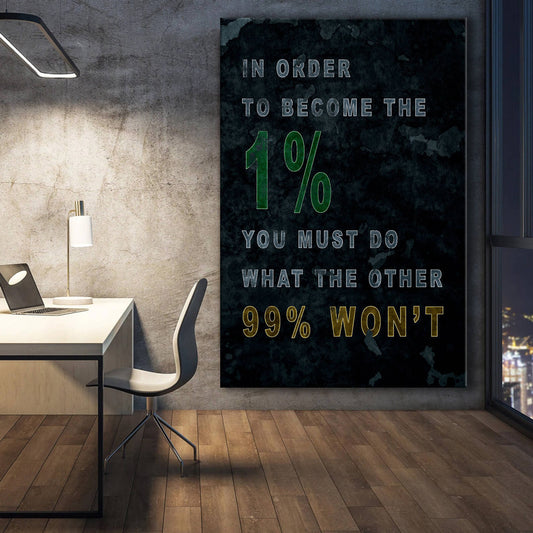 In Order to Become the 1 Percent You Must Do What the Other 99 Won't Canvas Motivational Quote Art