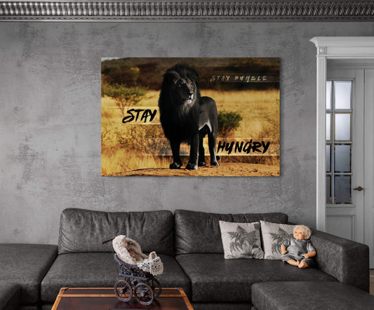 Stay Hungry Stay Humble Canvas Black Will Lion Motivational Quote Poster Lion in Jungle Leader Print King Leo Inspirational Office Art