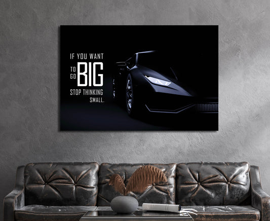 Go Big Lambo Wall Art Sport Car Success Quote Wall Art Inspirational Entrepreneur Home Office Decor Stop Thinking Small Level Up Art