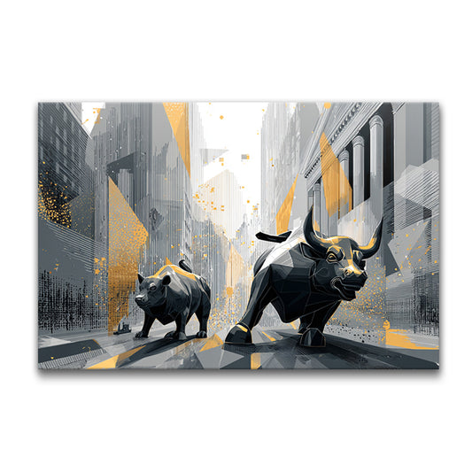 Wall Street Bull & Bear Canvas Wall Art – Stock Market Finance Artwork, Modern Abstract Trading Decor, Investor Office Wall Decor for Traders, Finance Office, Business Workspace
