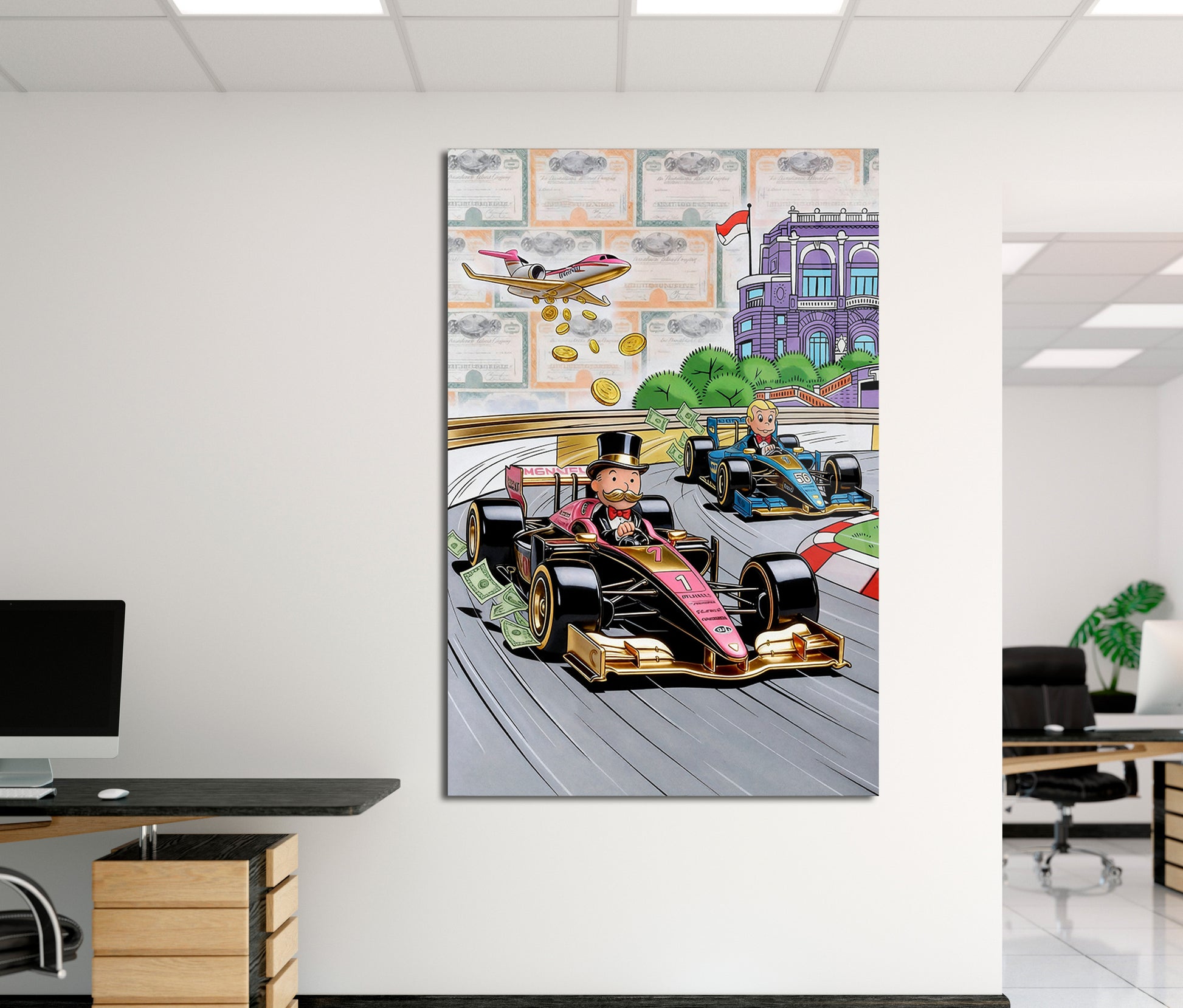 Alec Monopoly Luxury Racing Acrylic Wall Art Modern Money Print Supercar Racing Artwork High Gloss Acrylic Canvas Office Wall Decor